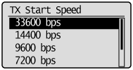 ], kad paryškintumėte <TX Start Speed>, tada paspauskite [OK] (Gerai).