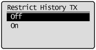 ], kad paryškintumėte <Restrict TX Function>, tada paspauskite [OK] (Gerai).