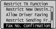 ], kad paryškintumėte <Restrict TX Function>, tada paspauskite [OK] (Gerai).