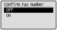 ], kad paryškintumėte <Fax No. Confirmation Re-Entry>, tada paspauskite [OK] (Gerai).