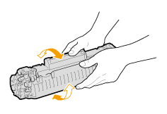 Penkis ar šešis kartus švelniai pasiūbuokite dažomųjų miltelių kasetę, kad dažomieji milteliai tolygiai pasiskirstytų.