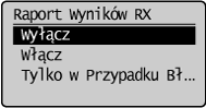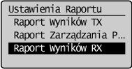 ], aby wybrać opcję <Raport Wyników RX>, a następnie naciśnij przycisk [OK].