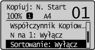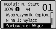 Jeśli na przykład kopiowane są trzy egzemplarze trzystronicowego dokumentu, wydruki zostaną pogrupowane w następującej kolejności: „1, 1, 1”, „2, 2, 2”, „3, 3, 3.”