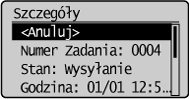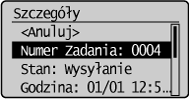 ], aby wybrać opcję <Tak>, a następnie naciśnij przycisk [OK].![]() Zadanie wysyłania zostanie anulowane. Transmisja faksu do wszystkich odbiorców zostanie anulowana dla rozsyłania sekwencyjnego.