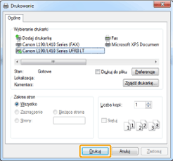 ] (Urządzenia) -> drukarka, której używasz -> [Print] (Drukuj). Drukując w ten sposób, może użyć tylko kilku funkcji drukowania. |