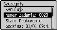 ], aby wybrać opcję <Stan Zadania Drukowania>, a następnie naciśnij przycisk [OK].