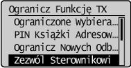 ], aby wybrać opcję <Zezwól Sterownikowi Faksu TX>, a następnie naciśnij przycisk [OK].