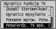], aby wybrać opcję <Potwierdz. TX Wyb. Jednoprzyc./Kodowane>, a następnie naciśnij przycisk [OK].