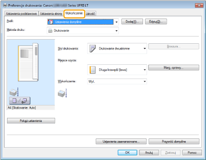 Instrukcje na temat sposobu otwarcia ekranu sterownika drukarki znajdują się w częściach „Drukowanie” oraz „Konfiguracja domyślnych ustawień drukowania”.