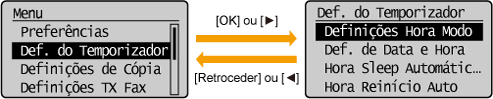 ] para seleccionar o item e avançar para o ecrã seguinte.