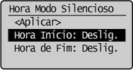 ] para realçar <Definições Hora Modo Silencioso> e, em seguida, prima [OK].