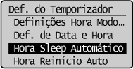 ] para realçar <Hora Sleep Automático> e, em seguida, prima [OK].