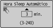 Definições da hora de sleep automático:Pode definir o tempo de sleep automático entre <3> e <240> minutos, em intervalos de um minuto. A predefinição é <3> minutos.