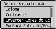 ] para realçar <Contraste> ou <Inverter Cores do Ecrã> e, em seguida, prima [OK].