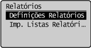 ] para realçar <Definições Relatórios> e, em seguida, prima [OK].