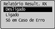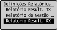 ] para realçar <Relatório Result. RX> e, em seguida, prima [OK].