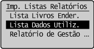 ] para realçar <Imp. Listas Relatórios> e, em seguida, prima [OK].