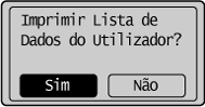 Especifique se pretende imprimir a lista de dados do utilizador.