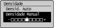 ] ou [ ] para ajustar <Densidade Manual>, quando está seleccionada a opção <Densid. Auto> ou <Densidade Manual>. |