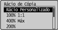 Prima [  ] ou [  ] para realçar <Rácio Personalizado> e, em seguida, prima [OK].
