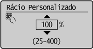 Prima [  ] ou [  ] para especificar o rácio e, em seguida, prima [OK].