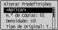 ] para realçar <Aplicar> e, em seguida, prima [OK].