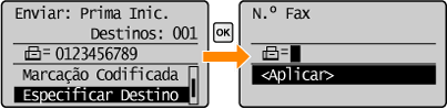 (2) Especifique o destino seguinte com as teclas numéricas e prima [OK].
