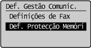 ] para realçar <Def. Protecção Memória> e, em seguida, prima [OK].
