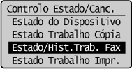 ] para realçar <Estado/Hist.Trab. Fax> e, em seguida, prima [OK].