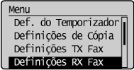 ] para realçar <Definições de Fax RX> e, em seguida, prima [OK].