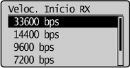 ] para realçar <Veloc. Início RX> e, em seguida, prima [OK].
