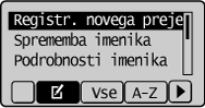 ] ali [ ], da označite <Hitro izbiranje> ali <Kodno izbiranje>, in pritisnite [OK] (V redu).![]() |