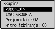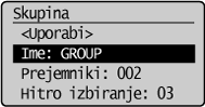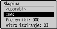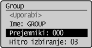 Če želite prejemnike dodati skupini, jih morate prej registrirati na tipke za hitro izbiranje ali kode za kodno izbiranje.