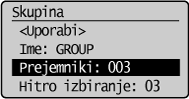 Pred registriranjem skupinskih naslovov:Skupinske naslove registrirajte na neuporabljene tipke za hitro izbiranje ali kode za kodno izbiranje. Nekaj tipk za hitro izbiranje ali kod za kodno izbiranje pustite za skupinsko izbiranje.