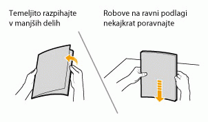 Vodili za dokumente prilagodite širini papirja, tako da ob straneh ne bo praznega prostora.Če sta vodili za dokumente nastavljeni pretesno ali preohlapno, lahko pride do napak pri podajanju in zagozdenja.