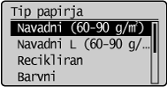] označite želeno vrsto papirja in pritisnite [OK] (V redu).