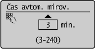 Nastavitve časa avtomatskega mirovanja:Izberete lahko čas samodejnega preklopa v način mirovanja v enominutnih intervalih od <3> do <240> minut. Privzeta nastavitev je <3> minute.