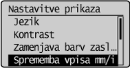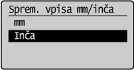], da označite <Sprememba vpisa mm/inča>, in pritisnite [OK] (V redu).
