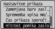 ], da označite <Hitrost pomika zaslona>, in pritisnite [OK] (V redu).