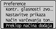 ], da označite <Preference>, in pritisnite [OK] (V redu).