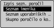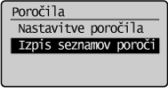 ], da označite <Izpis seznamov poročil>, in pritisnite [OK] (V redu).