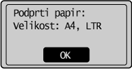 Preverite, ali je papir pravilno vložen v vir papirja, in pritisnite tipko [OK] (V redu).