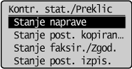], da označite <Stanje naprave>, in pritisnite [OK] (V redu).
