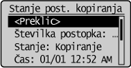 ], da označite <Stanje post. kopiranja>, in pritisnite [OK] (V redu).