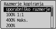 ], da označite <Razmerje kopiranja>, in pritisnite [OK] (V redu).