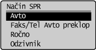 ], da označite <Način SPR>, in pritisnite [OK] (V redu).