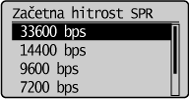 ], da označite <Začetna hitrost SPR>, in pritisnite [OK] (V redu).