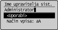 ] ali [ ], da označite <Ime upravitelja sistema>, in pritisnite [OK] (V redu). ![]() |
