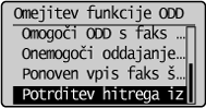 ], da označite <Omejitev funkcije ODD>, in pritisnite [OK] (V redu).