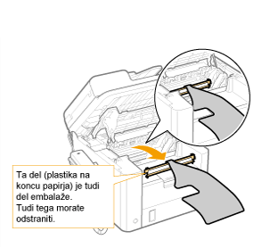 Ko odstranjujete zagozdeni dokument ali papir:Bodite previdni, da se ne porežete po rokah.